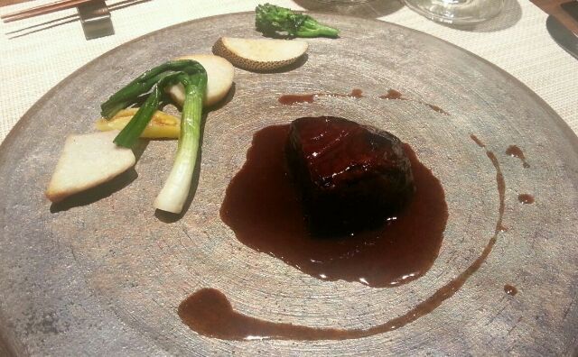 夫は前菜の春菊と柚子のソースがかなり気に入っていたようです。確かに春菊の苦さと柚子の香りが、稲藁で燻した鰤と蕪の甘みにとても合っていて。季節を感じられる一皿でした。