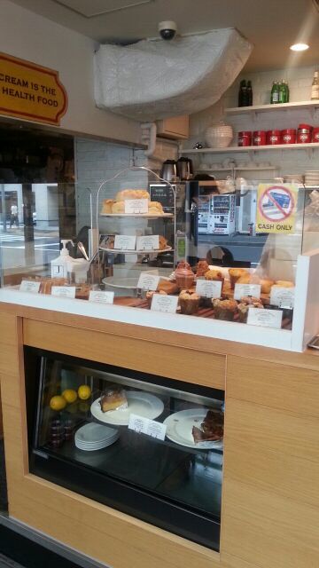 ショーケースには色とりどりのスイーツ。色がハッキリしたものが多くて 全体的にとても華やかです。日本ではあまりなさそうな色使い。 ピエール・エルメやラデュレのケーキとかと似た印象を持ちました。