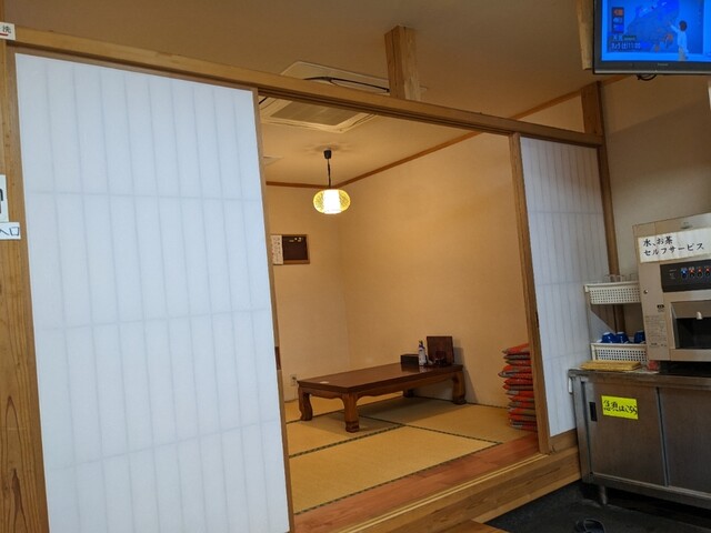 注文後、お茶とお水はセルフですとの案内を受け、取りに行く。