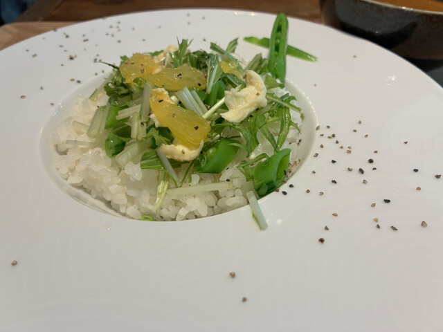 個人的には、色々なハーブがのっていたけど、みょうがの香りが、おいしさを引き立てていたと感じた。