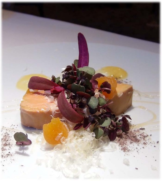 4.フォワグラのナチュラルとコンテ、あんず、白味噌、ヴァニラ、アマランサスと紫蘇の葉
