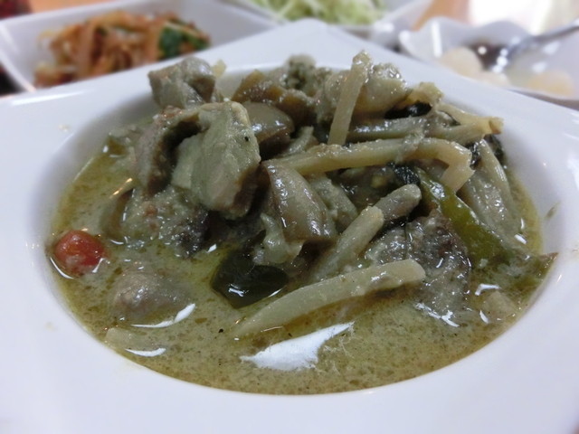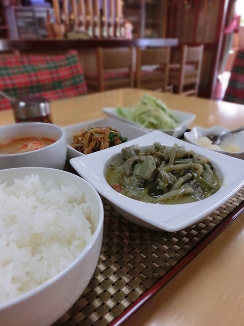 チキン、竹の子、なす 香草 などで出来た具沢山グリーンカレー。