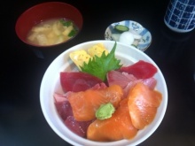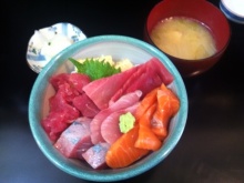 ランチメニューは、三色丼・まぐろやまかけ丼・まぐろ、ぶり丼・まかない丼・刺身定食とありましたが、