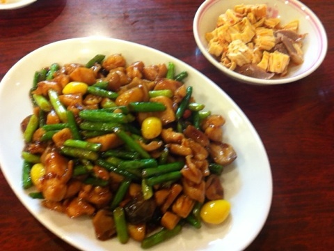 ニンニクの芽と鶏肉の炒め525円を注文です。