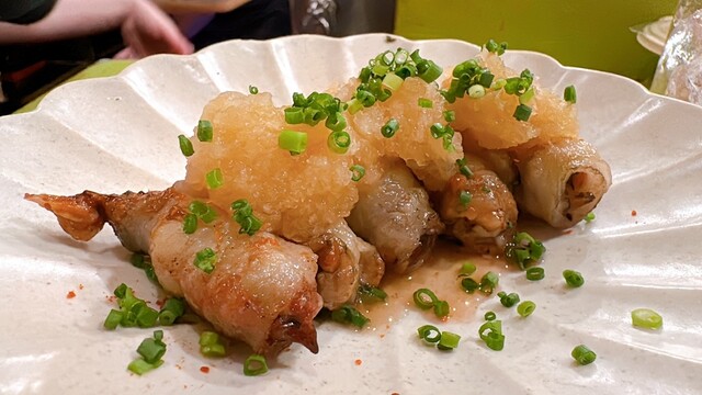 次いで出てきた豚バラ肉でホタルイカを巻いたのは