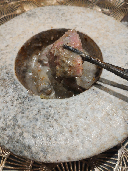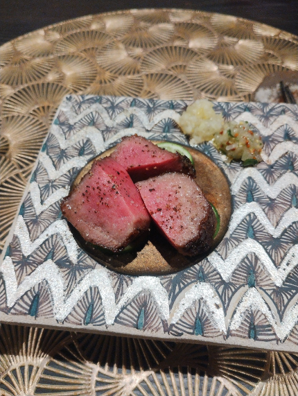 一緒に行ったんですわ。肉料理が色々とコースで供される。料理に使われているお肉の肉質は最高でね。