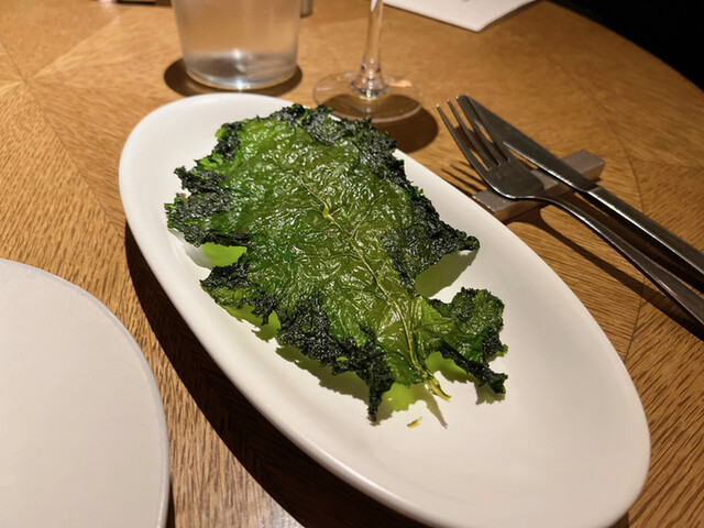 お通しのケールチップス(539円税込 ※チャージ料)
