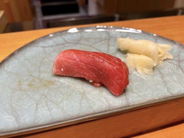 →このわたの塩味と独特の風味が甘くねっとりしたアオリイカとフュージョンし、両雄見事に並び立つお鮨に。日本酒を注文しなかったことを激しく後悔した一品でした(涙)