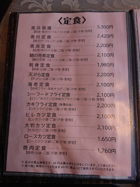 R7.10.5煮付け定食は2420円。炊きたてご飯が大変美味しい。お汁は潮汁。大盛はプラス100円になっていました。
