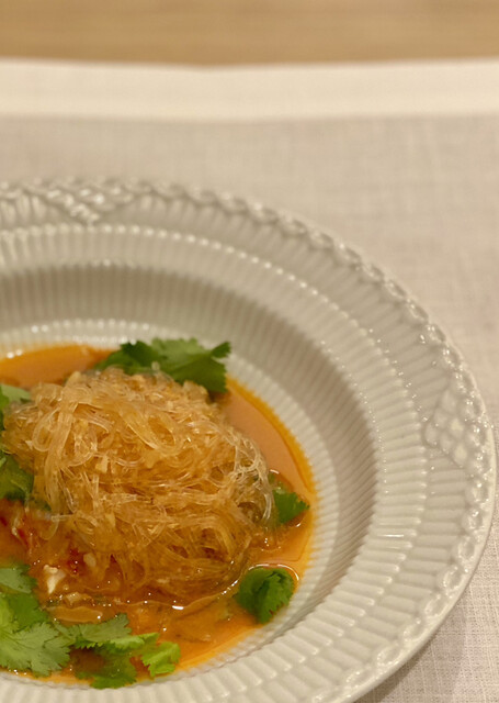 #スペシャリテのベルーガの冷製ビーフンをウォッカを飲みながら美味しいと叫ぶしみじみと美味しい最強