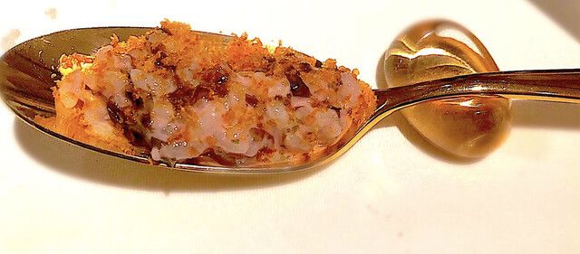 すっかり写真を撮り忘れた1皿。超肉厚の高級椎茸の上には加能蟹が乗ってます。最近肉厚しいたけが熱いネ。この間お邪魔したAlteregoでも肉厚椎茸のお皿があったなぁ。キノコから溢れるエキスを十分に堪能しますた。