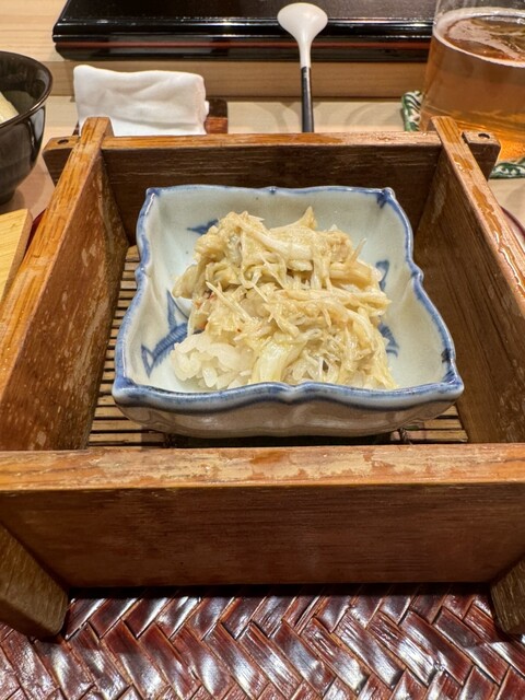 鯵も2種類いただけて幸せ。おつまみの時に出た毛ガニの体の身で蒸寿司がいただけるのもよかった。お出汁も貝出汁のこのこって所がセンスが光る♪ウニはたっぷりだけど細巻。