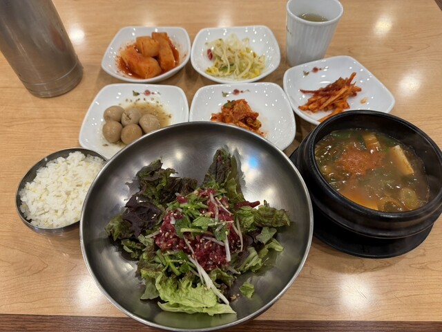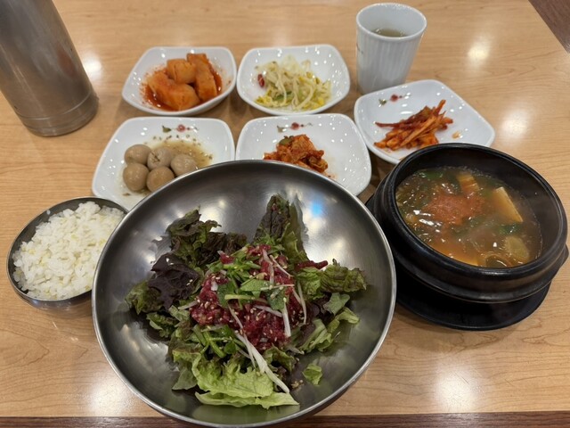 韓牛ユッケも美味しいけど付け合わせのおかずもスープも全部完璧に美味しかった!めちゃめちゃ好み!!