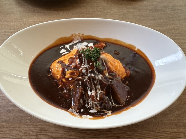 オムビーフシチューは、とろとろの卵、柔らかく煮込まれた牛肉とビーフシチューとオムライスのそれぞれが美味しいし、同時に食べると最高に美味い!