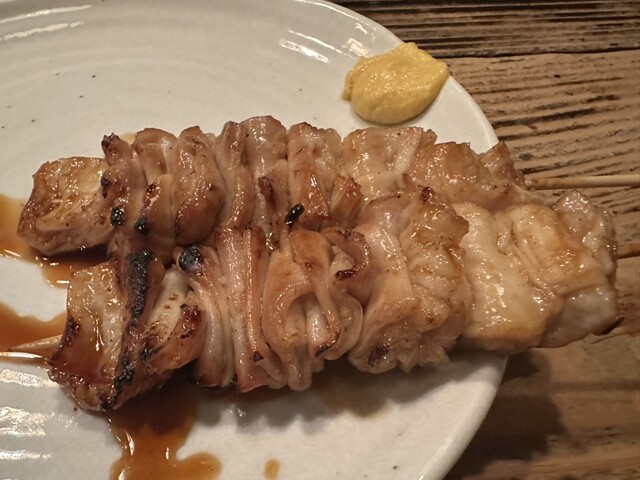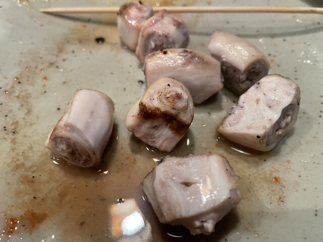 さてお通しからまもなくおしんこ(小)が登場。焼物はテッポウからだろうという予想に反してレバーのタレから。そしてシオにうつってハツ、タン、産道へ。ここで待望のコブクロ刺が登場、オウカクマクが危ないと感じたので追加でナンコツと一緒に頼む。おかしい、ひょっとして忘れられているか?と引っ込み思案の私ではあるが勇気を持って尋ねてみたら案の定。ラストにテッポウをいただきフィニッシュだ。ホントはテッポウとレバーはアタマとシメにいただくのがデフォルト、つくねも頼まなかったな、と後悔は残るが腹八分目という亡き父の言葉を思い出して無理せず九分目で終了、一分多かったか、、、これは体調不良のせいか?はたまた年齢のせいか?いずれにせよゆっくり帰ろう。ご馳走様でした。