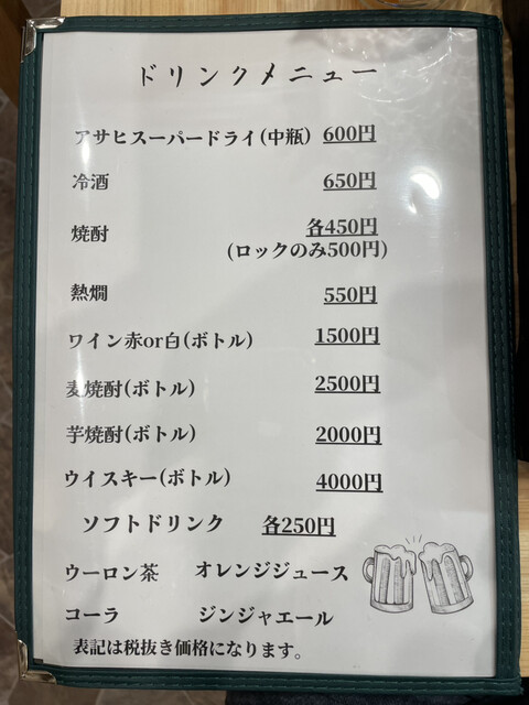 さてオープン初日、17:30には間に合わず訪れてみると、奥で若旦那が早速串を揚げておられる。前の白ではなく紺色を身に纏っておられるのも新鮮だ。入ってすぐの席に同じ色を身につけている方が振り返ると、なんと親方であった。白ではなかったのでてっきり一般人かと思ったが・・・