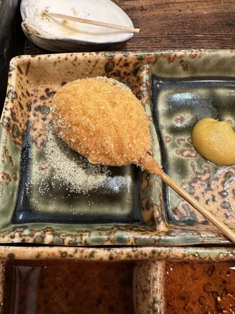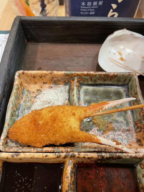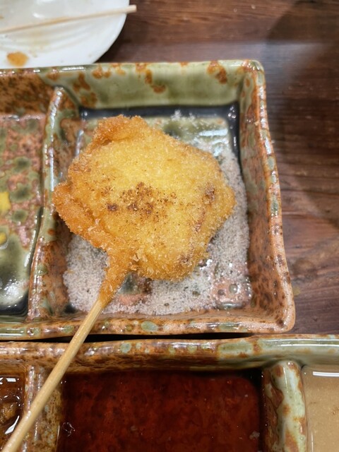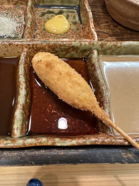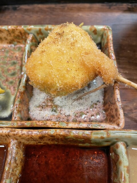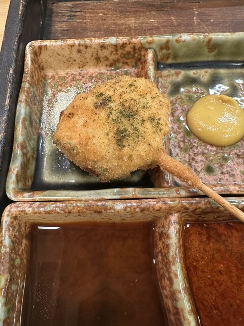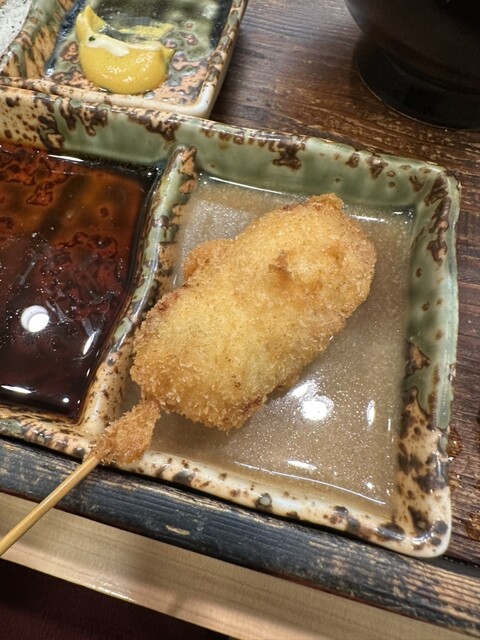 富来也の串揚げはチェーン店とは違って、一本一本仕事してるなー、と感じさせる逸品であるが、それ以上の言葉が見当たらず。食レポ通の方々のような気の利いたコメントができずにすみません。