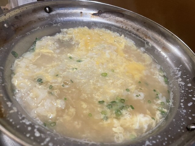 こちらは餃子を半分こ、白バイに始まり生牡蠣も5個、イタヤ貝のガーリックバター炒め、そしてメインのお色気鍋で雑炊2人前を平らげて今夜もご馳走様でした。