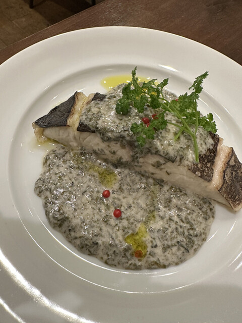 海苔のソースと合わせたサワラは店主さんが釣ったものらしい。