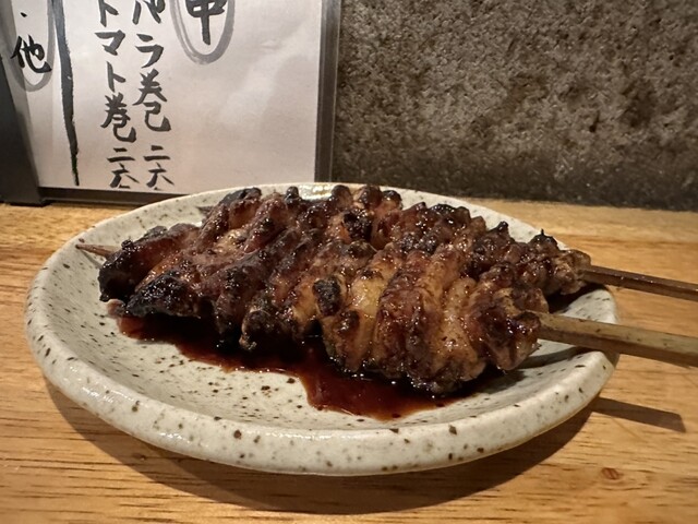テーブルのメニューは焼き鳥しか書いてないけど、あちこちにもつ煮込み、ガーリックチャーハン、唐揚げなど、いろんなメニューが貼ってあります