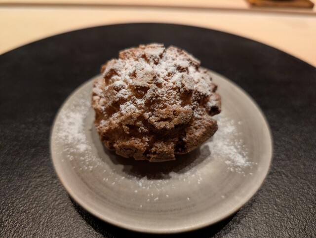 その注文のコース、内装や盛り付けには和の趣が漂いますが、その真髄は店主の経験に裏打ちされたフランス料理にあり、味わいの決め手は「出汁」ではなく、緻密に構成された「ソース」になっております。その全てのお料理格別でしたが、その中でも、濃厚なタチとタラ、トリュフを併せた「パエリア」、スパイスが絶妙に香る「エゾシカのステーキ」が特に印象に残った逸品でした。