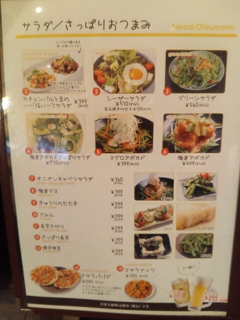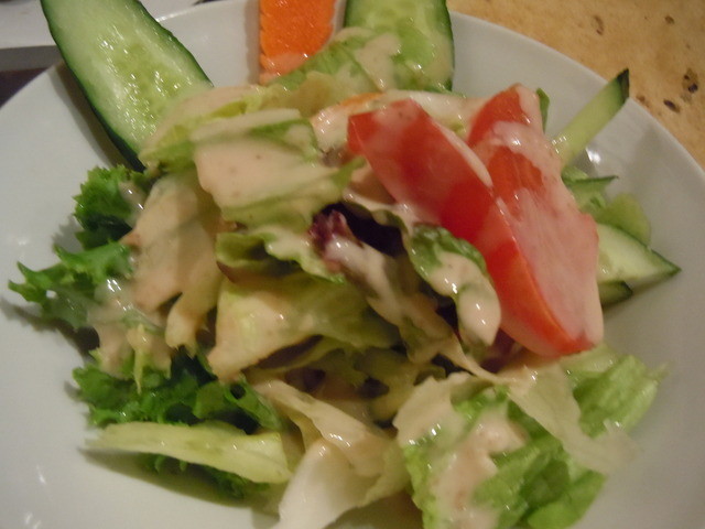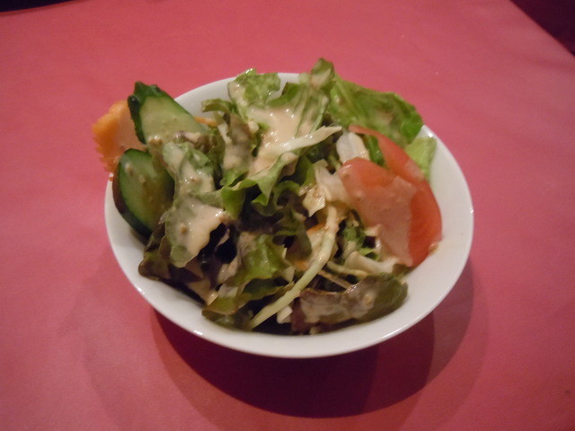 まずサービスの天ぷらパコーラとサラダが来ました。