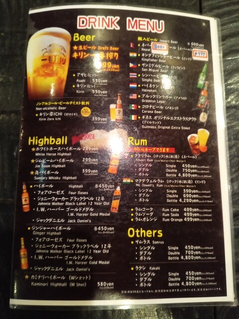 ソフトドリンクの中にはプレーンラッシー、イチゴラッシー、マンゴーラッシーなど、ラッシー類なども含まれています。