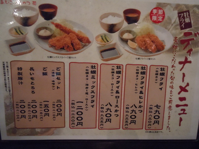 私はヒレカツ(1050円)妻は牡蠣フライ(830円)の、ごはんセット(210円)を注文しました。