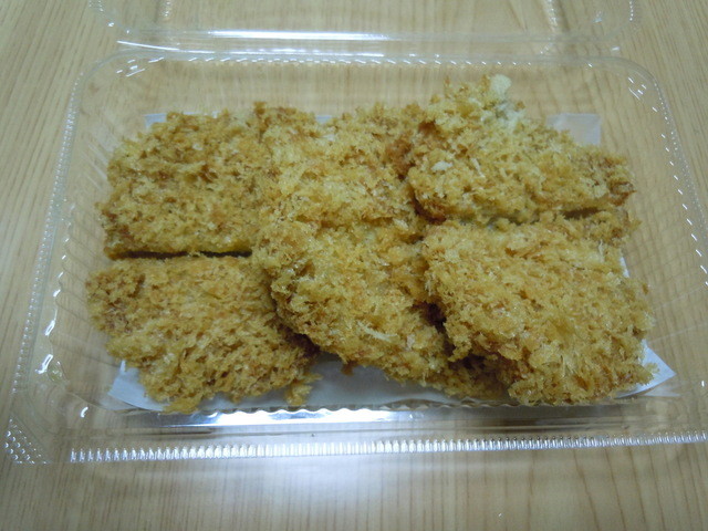 待つこと暫し、運ばれてきました。チキンカツが9切れ、揚げ網に乗っています。