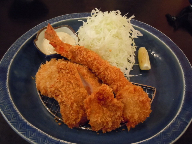 海鮮ふらい盛り合せは、ヒレカツ2切れ、エビフライが1つ、帆立フライ2切れ、カニクリームコロッケが1つ。このカニクリームコロッケは手作り感満載の美味しさでした。