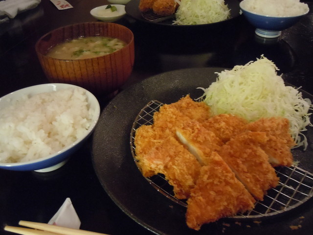 待つこと暫し、運ばれてきました。柔らかく旨みのあるヒレかつが4切れ、大粒の牡蠣フライが2つ。今回は両方を楽しむことができました。やはり牡蠣フライはレモンと醤油で頂くのが一番の好みです。また、豚汁は具だくさんで美味しかったです。この日も店内は家族連れなどでほぼ満席状態でした。