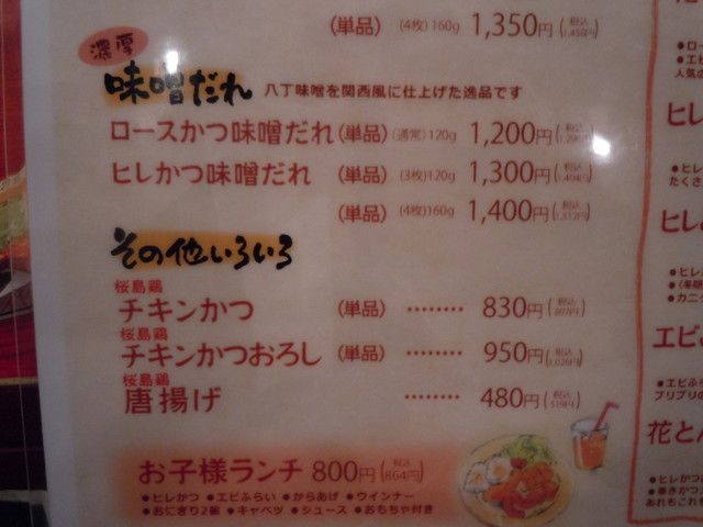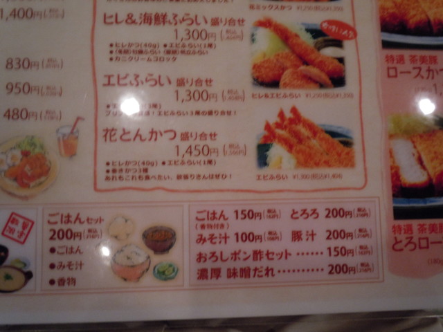 注文は、私がヒレかつ味噌だれ(1300円)、妻がロースかつおろし(1150円)、それぞれごはんセット(200円)です。