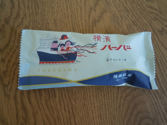 薄く柔らかいカステラの生地に粒栗入りの栗餡の入った、横濱ハーバー。
