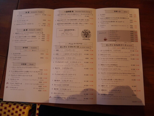 トマトソース、モッツアレラ、ベーコン、きのこ、玉葱、オリーブ、グラナバダーノ、気まぐれ(1250円)