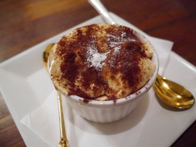冷たくてとろりとしたクリームとコーヒーの苦み、マスカルポーネがふんわり口の中で溶けて、美味しいデザート。底のスポンジにはしっかりお酒が染み込んで、大人の味です。小でも十分楽しめました。