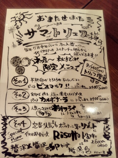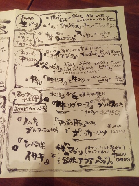 こちらは通常メニューとは別に、手書きの本日のおすすめメニューが3枚ありました。