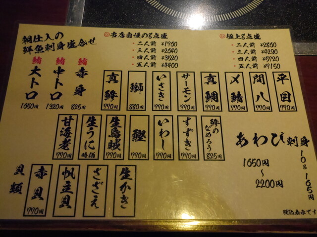 刺身当店自慢の8点盛、二人前(1760円)