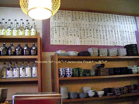 一品料理のメニューと、和食器、お酒のボトルがズラッと並んで圧巻だ。