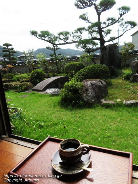食後のコーヒーは、セルフサービスで、縁側の隅にあります。