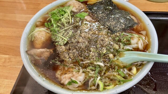ワンタンは大きな餃子のようなワンタンが12個。このワンタンが食べ応えがあり味付けも絶妙で美味しさ味わえます。