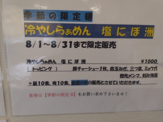 《冷やしらぁーめん 塩にぼ洲 1000円》