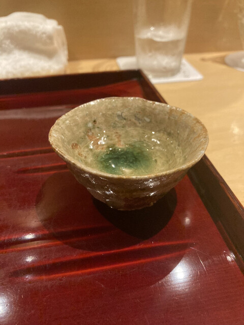 酢飯にあん肝や白海老などが入っているとのことでした。ねっとりとした食感。柚子の釜の果汁を絞ってかけると一層柚子の香りが広がり、濃厚なのに爽やかな味わいに。美味しかったです。