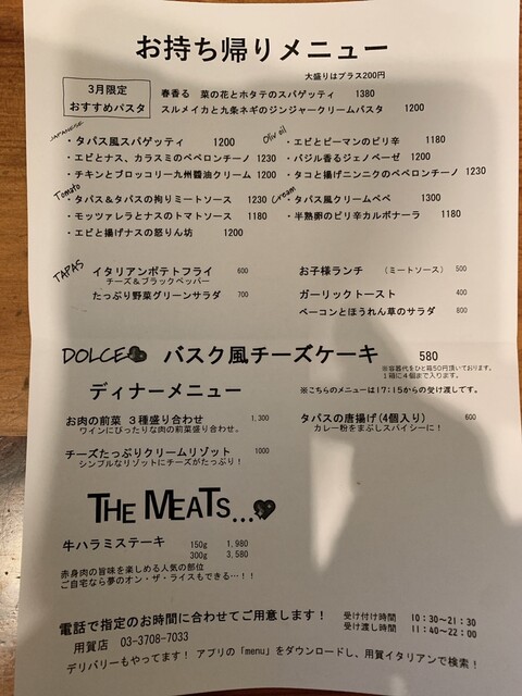 コロナ禍以降、殆どテイクアウト利用のみになっていたタパス&タパス 用賀店さん。