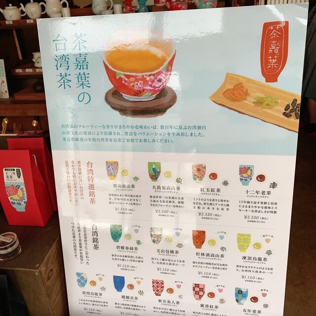 その中から台湾茶13種の中から大禹嶺高山茶 10g 1,150円と蜜香紅茶 10g 590円(税込) の2種を購入。持ち帰って翌日以降この二つをいただくのが楽しみです。