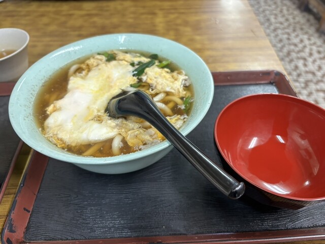 肉そばと、卵とじうどんも優しい味ながらおいしい!
