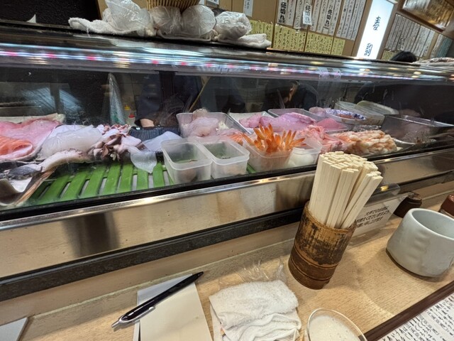 5/1平日の13:30で、行列六組待ち。ちょうど退店する人と入れ替わりで、10分程度で店内、カウンターにご案内。