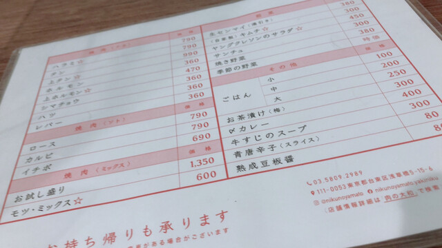 メニューも一部改定されており、タンの表記が変わっていたり、ウインナーがリストオンされてました。