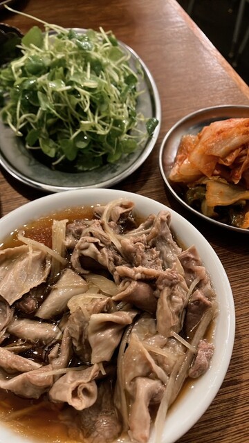 この日もいつも通りビールをグビビッとしながら、ヤングクレソンのサラダとキムチと牛スジポン酢の3点セットで準備運動。