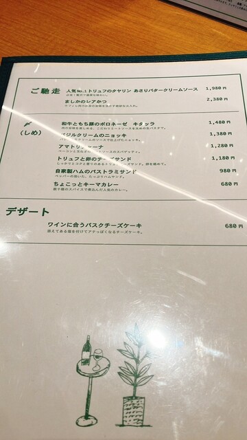 ・トリュフのタヤリン、浅利バターソース(1,980円)