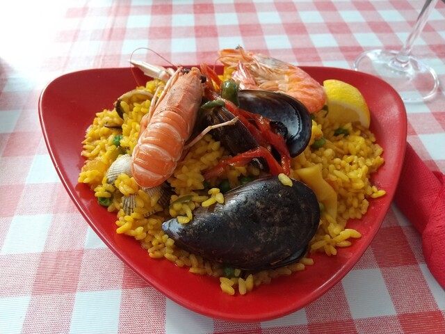 街はコンパクト。ここでも名物はタコ等のシーフード。